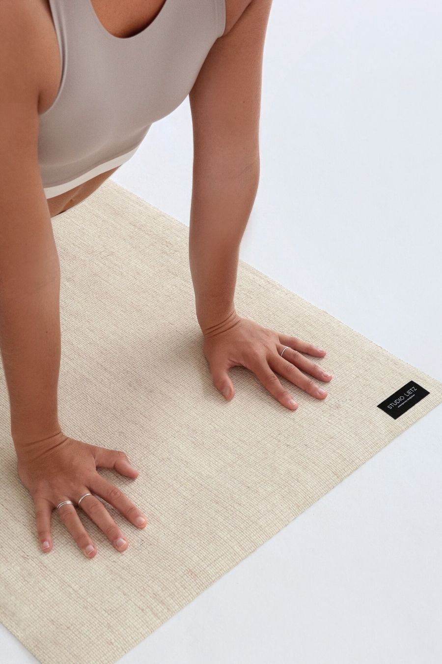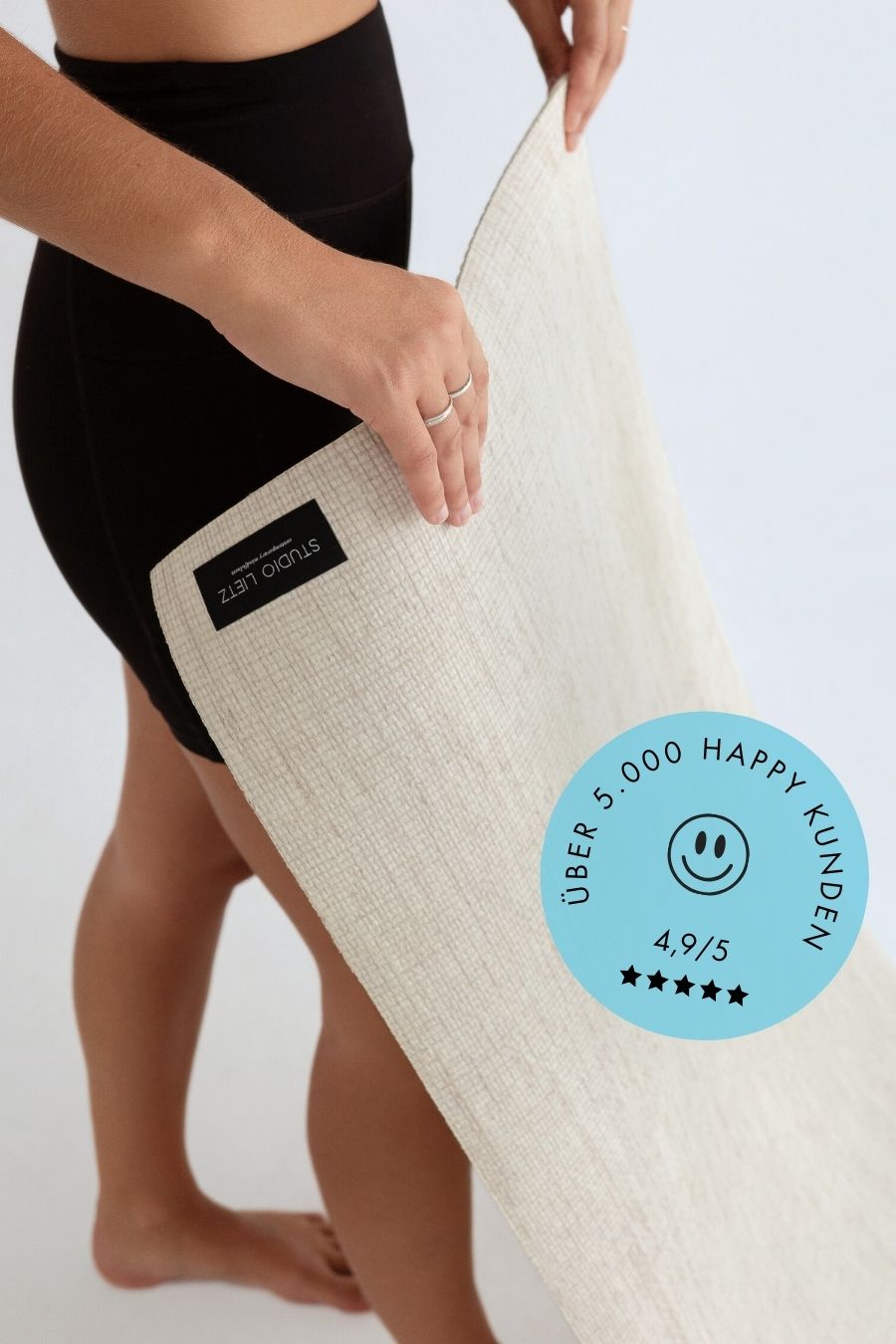 "Perfekter Grip, wellt nicht, rutscht nicht. Ist obendrein nicht nur super stylish, sondern vor allem auch nachhaltig. Eine echte Bereicherung für meine Yogapraxis! 🤍"